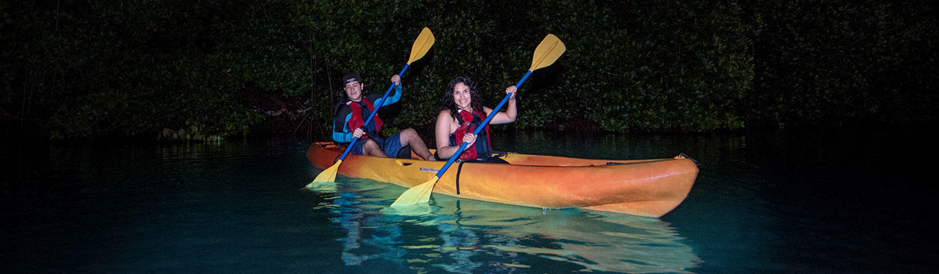 Experience one of the most magical natural wonders in Puerto Rico: kayaking through the bioluminescent waters of Laguna Grande in Fajardo. As you glide beneath the mangrove canopy and into the glowing bay, every paddle stroke lights up the water with thousands of microscopic organisms. It’s not just a tour — it’s something you’ll never forget.