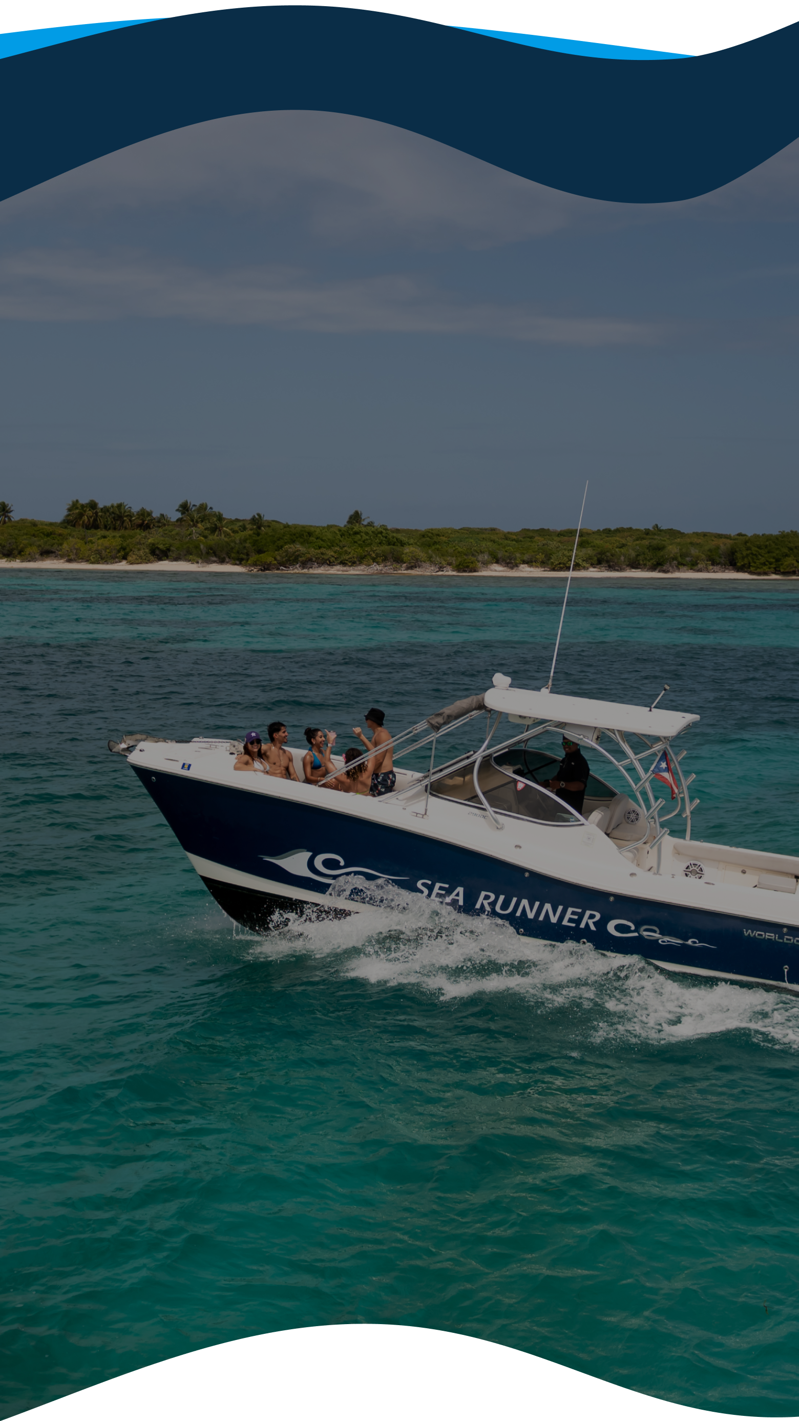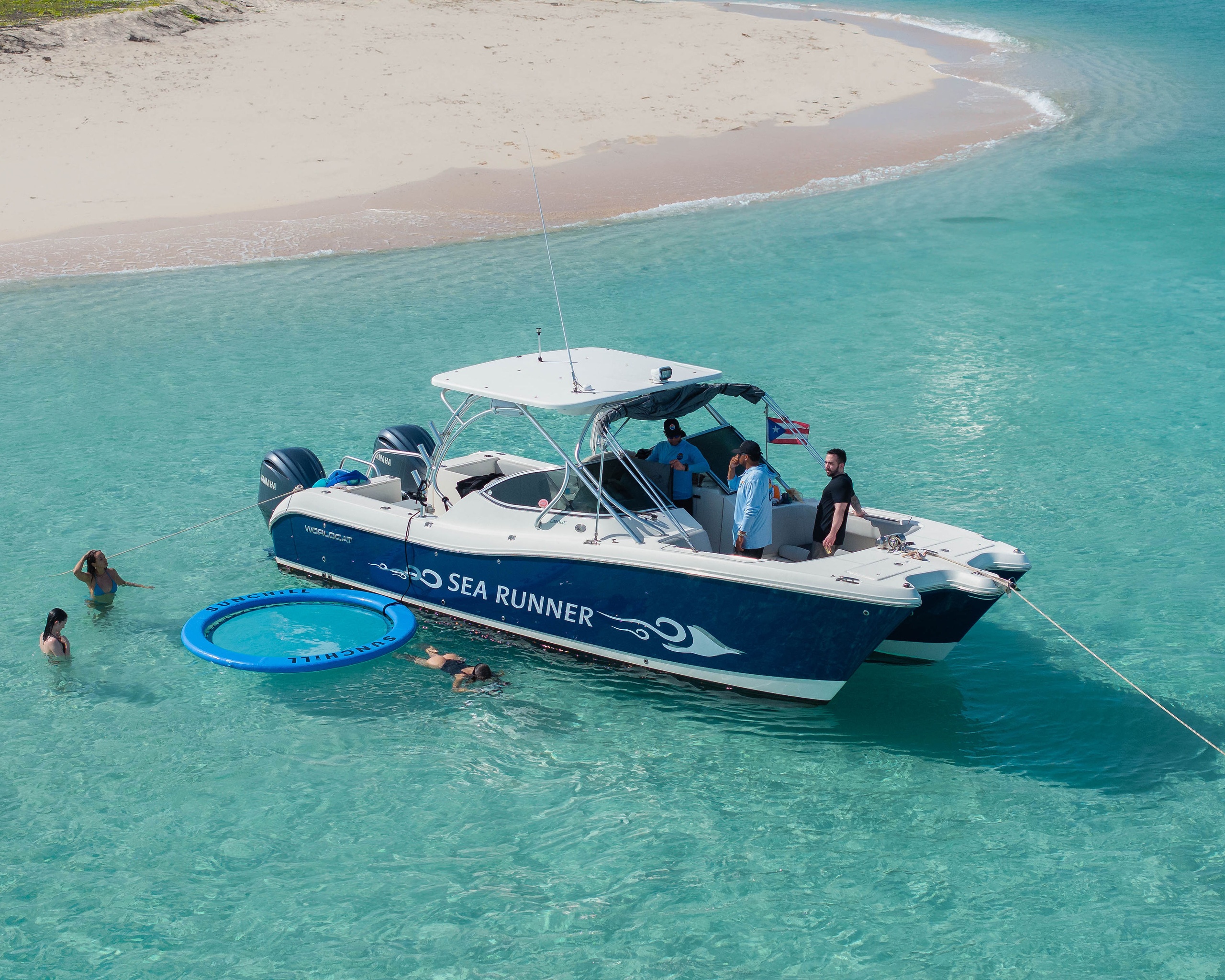 Explore Puerto Rico’s most beautiful hidden spots aboard Sea Runner, our sleek 29-foot World Cat. With no crowds and no rush, you and your group of up to 6 guests can relax, snorkel, sunbathe, and toast to life — all with the privacy and comfort of a fully equipped vessel.
